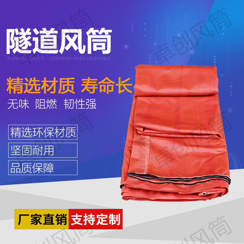 隧道風筒的構造是以高強滌綸晶格布為骨架,PVC塑料滌綸風筒布制作而成。有著強度高、質輕、耐折疊、加工迅速和易加工、易修補、使用壽命長等特色。